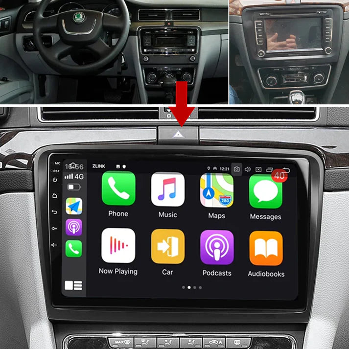 - 【Wired/Wireless CarPlay & Android Auto】The Skoda support the latest IOS and Android systems, you can use Carplay/Android Auto through wireless or wired connection. Easily for you to wake up voice assistant and access your cell phone functions including music, video, GPS navigation, calls, notification, messages, watch movies, and more.