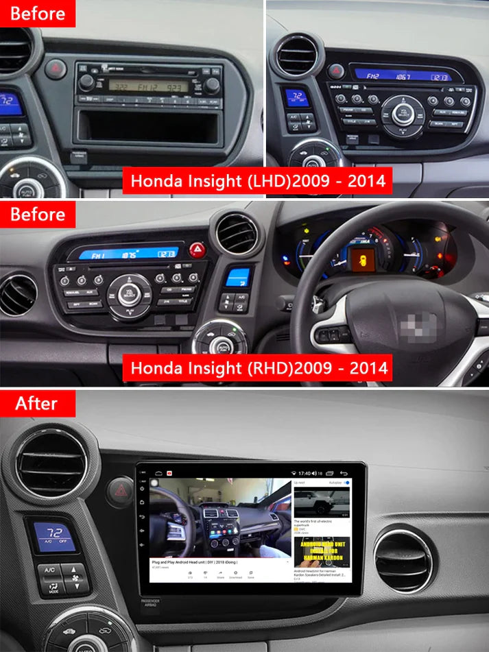 【Car Stereo Compatibility】 The Car Stereo Android Auto Carplay Radio Player Navigation GPS For Honda Insight 2 LHD RHD 2009-2014 Head Unit Plug And Play. Plug & play, all necessary harness are provided, no need to cut the harness, easy to install. Support Backup Camera and Steering Wheel Control.