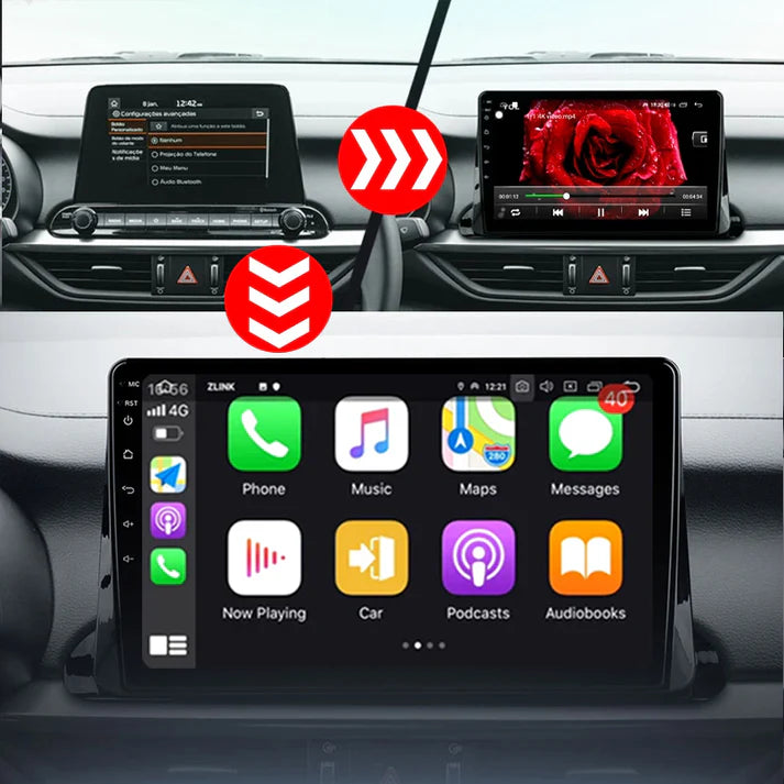 - 【Wired/Wireless CarPlay & Android Auto】The Kia support the latest IOS and Android systems, you can use Carplay/Android Auto through wireless or wired connection. Easily for you to wake up voice assistant and access your cell phone functions including music, video, GPS navigation, calls, notification, messages, watch movies, and more.