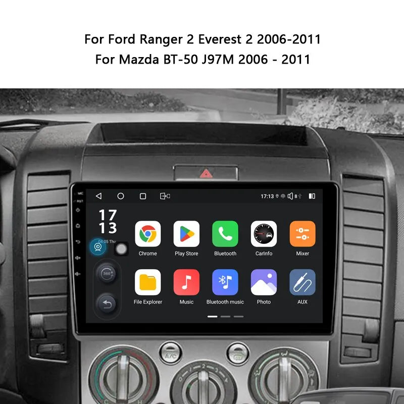 - 【Car Stereo Compatibility】 The 9inch Car Stereo Android Radio Multimedia Player For Ford Ranger 2 Everest 2 For Mazda BT 50 J97M 2006-2011 Navi GPS Head Unit. Plug & play, all necessary harness are provided, no need to cut the harness, easy to install. Support Backup Camera and 360° Panorama Camera and Steering Wheel Control.