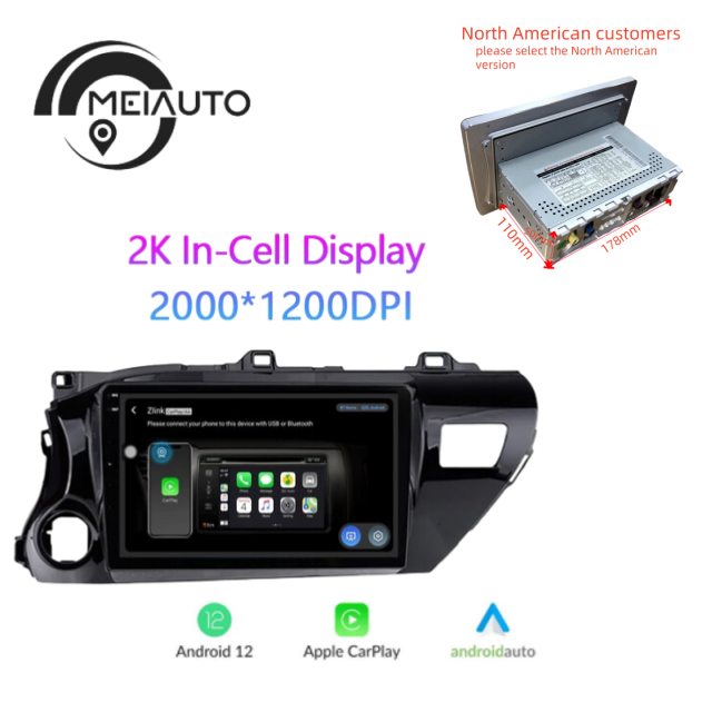 - 【Wired/Wireless CarPlay & Android Auto】Toyota Hilux head unit support the latest IOS and Android systems, you can use Carplay/Android Auto through wireless or wired connection. Easily for you to wake up voice assistant and access your cell phone functions including music, video, GPS navigation, calls, notification, messages, watch movies, and more.