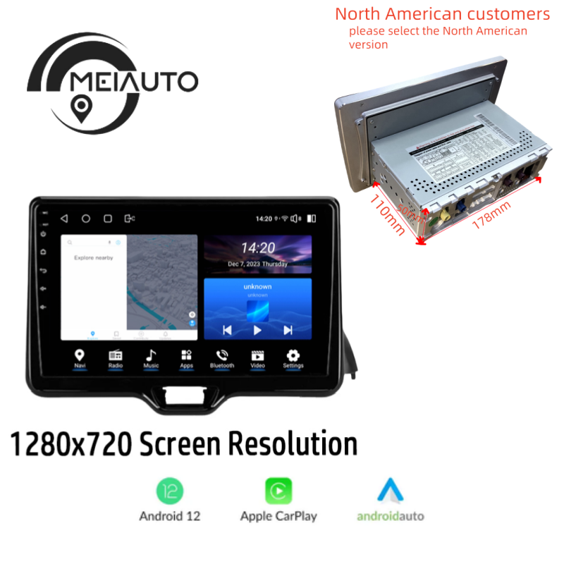 - 【Android 12 System and 2.5D Touchscreen】Toyota Yaris Vios car radio has excellent Android 12 system, 8GB RAM & 128GB ROM, allows operate smoothly, and enough for you to download the applications you want. And it covered with 9 inch 2.5D anti-scratch glass touchscreen, 1280*720 HD in dash touchscreen display, makes the auto radio looks particularly clear and elegant.